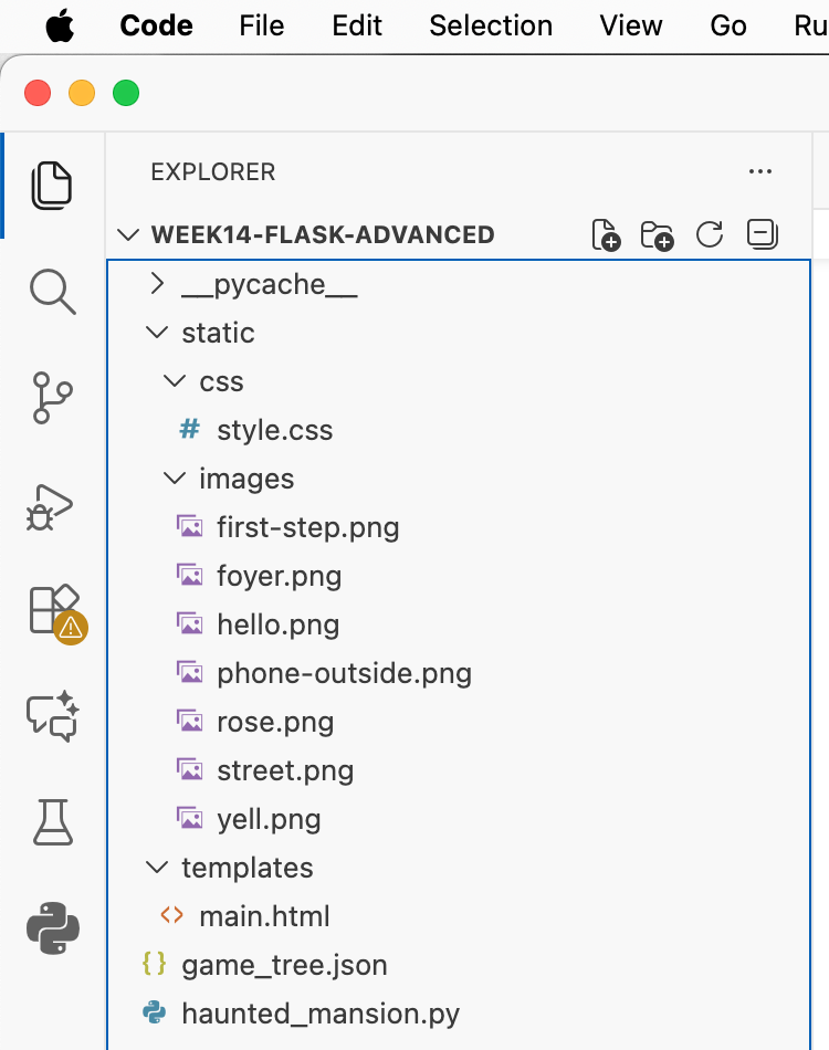 Today we looked at how to continue working with Flask to create an interactive experience, like a choose your own adventure game. We looked at fixing a bug that arose in the code of the class notes from last week, and looked at how to add images and other multimedia to this project.