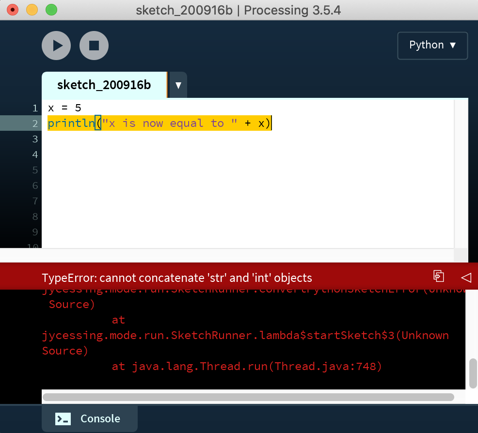 Processing Console, you will see some