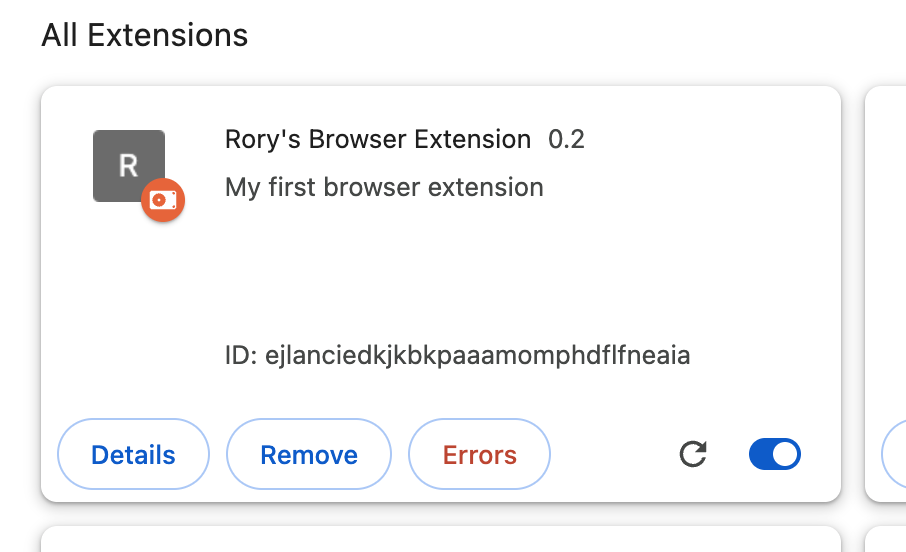 Please note that I've found that this can slow down my browser somewhat, so you may want to turn this option off when you're not working on this project. Don't worry, turning off developer mode will not delete or uninstall any extensions that you're working on.